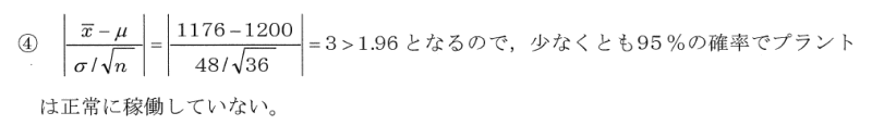 | A13 標準偏差 努力目標 理解してください 分散の加法性 技術士試験の問題からは必要最小限の引用にとどめる。(問題)が記されている部分はその引用である。 問題および解答は日本技術士会のホームページより必要に応じて入手してください。 技術士第一次試験の問題 問題番号が赤字のものは、ボーナス問題 H27年 T−1−5 H21年 T−1−3 H20年 T−1−3 H17年 T−1−2 同じ問題 H27年 T−1−5 と H21年 T−1−3 と H17年 T−1−2 関連するブロック E15 H27年 T−1−5 正答: @ (解答) 正規分布は、N(μ、σ2)と表す。μは平均値、σが標準偏差、σ2が分散である。 N(μ1、σ12)とN(μ2、σ22)においてつぎの分散の加法性が成り立つ。 σ2=σ12+σ22 この問題では、σ2=0.42+0.32=0.25 である。従って、標準偏差σ=0.5mmとなる。 部材Aと部材Bをつなぎ合わせた3500mmの結合部品が3501.5mmと1.5mm増える場合、 この1.5mmは3σに相当し(1.5mm/0.5mm=3)、与えられた確率表より結合部材が3501.5mmを超える確率は 0.13%である。 従って答えは@の0.2%未満となる。 (参考) 正規分布における存在確率は、±1σ以内が68.3%、±2σ以内が95.4%、±3σ以内が99.7%である。この存在確率から外れる分は、正規分布の各々のσ値より低い部分と高い部分である。この問題では高い値3σを超えることを問題としていたので、その超える領域の確率は(100−99.7)/2=0.15%(与えられている表では0.13%)となる。 H21年 Tー1−3 正答: A (解答) Z=R−Sであるからその平均も μR−μS 標準偏差は前問と同じく √(σR2+σS2) H20年 T−1−3 この問題はその場で考えていても解けません。 信頼区間とはこのようにして算出するとの公式を覚えましょう。そして、試験会場でこの問題に自信が持てなければパスしましょう。 (解答) ![]() (参考) 信頼区間(Wikipedia)より抜粋 ![]() H17年 T−1−2 正答: なし (解答) 正答なしとなっている。 答えは (μ、σ2)=[(μ2−μ1)、√(σ12+σ22)] 問題一覧表へ戻る |