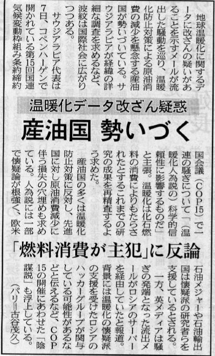 コペンハーゲンでこの7日から開催されているCOP15は、先進国と途上国の間で大きな意見の隔たりがあり、会議での結論が得られる見込みはまだ立っていない。この会議の始まる12月6日に温暖化は本当に起こっているのかとの疑念が再び噴出した。