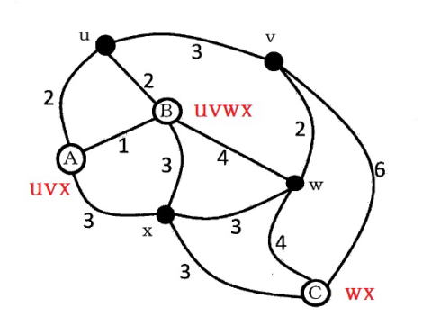 H25年 T−2−2 正答: D (解答) 答えは図のようになります。u、v、w、xからA、B、Cまでの最短距離を示しています。 施設Aでは、u 2、 v 3+2、 x 3. 施設Bでは、u 2、 v 3+2、 w 4、 x 3. 施設Cでは、 w 4、 X 3. ![]() 問題一覧表へ戻る |