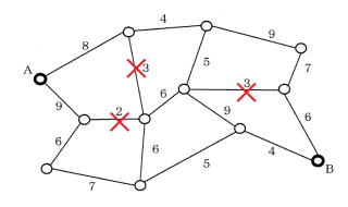 | B14 重み付け 努力目標 理解する 技術士試験の問題からは必要最小限の引用にとどめる。(問題)が記されている部分はその引用である。 問題および解答は日本技術士会のホームページより必要に応じて入手してください。 技術士第一次試験の問題 問題番号が赤字のものは、ボーナス問題 H26年 T−2−6 H25年 T−2−2 H20年 T−2−3 同じ問題 H26年 T−2−6 と H20年 Tー2−3 H26年 Tー2−6 正答: B (解答) 小さな値より順番に消していき、残された経路を確認する。4までは消去しても経路は残るが、5を消すと通行できる道路がなくなる。